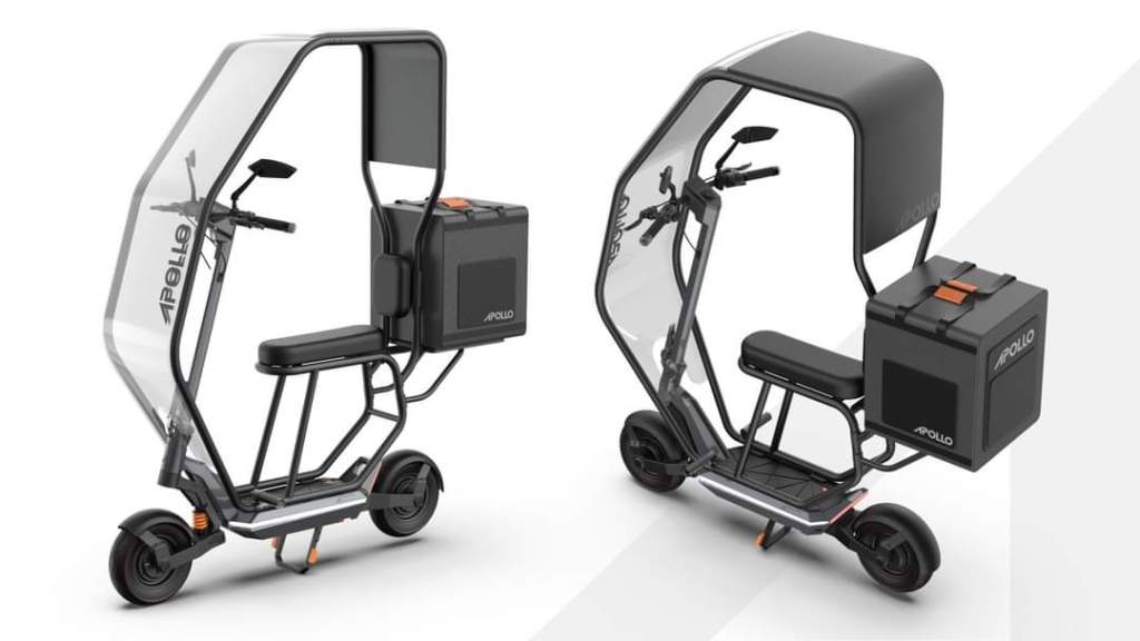 Apollo Scooters, one of the premier e-scooter brands out there, introduced prototype accessories (pictured below) for their premium hyper e-scooter, the Apollo Pro 2023, which would give us an all-weather enclosure ($500 MSRP), cargo attachment ($100 MSRP), and seat ($150 MSRP) that would all be sold separately.